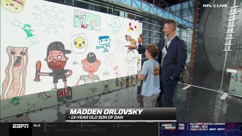 On yesterday’s episode, Orlovsky’s 13-year-old son, Madden, who is autistic, created graphics for NFL Live in celebration of World Autism Awareness Day. The graphics were made up of Madden’s drawings, which led to a full episode of beautiful moments on the ESPN broadcast.