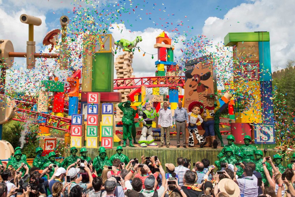 Toy Story Land, an immersive new land at Disney’s Hollywood Studios that invites guests to become honorary toys and “play big,” was dedicated this morning in a ceremony presided over by Disney Parks, Experiences and Consumer Products Chairman Bob Chapek. The colorful 11-acre land brings Pixar Animation Studios’ beloved Toy Story films to life in new and exciting ways, taking guests “to infinity and beyond” as they experience two new attractions, a delightful new dining establishment and unexpected surprises at every turn as they enjoy a “toy’s eye view” in Andy’s backyard. The land opens to guests on Saturday, June 30.