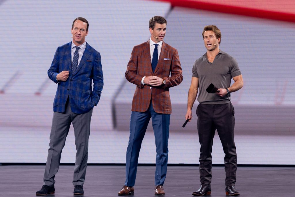 Peyton and Eli Manning proved their skills go far beyond the football field as they broke into a live musical performance featuring stars from TV’s biggest hits including High Potential (Kaitlin Olson), Paradise (Sterling K. Brown), Get Up (Mike Greenberg) and Abbott Elementary (Sheryl Lee Ralph). Together, the group assisted the NFL greats in a formal pitch to executives for more projects across Disney brands, featuring none other than the Manning brothers.