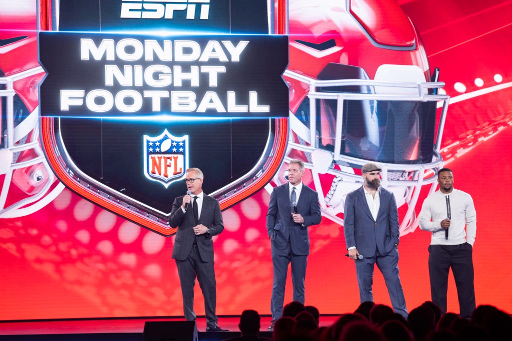 NFL legends and ESPN stars Jason Kelce, Joe Buck, and Troy Aikman welcomed back Saquon Barkley to talk about the upcoming Monday Night football season, the strength of the NFL on ESPN and Super Bowl LXI coming to ABC and ESPN in 2027. Later, Patrick Mahomes joined Jason to announce the title and debut a first look at The Kingdom — an upcoming six-episode ESPN Original Series documenting the storied history of the Kansas City Chiefs.