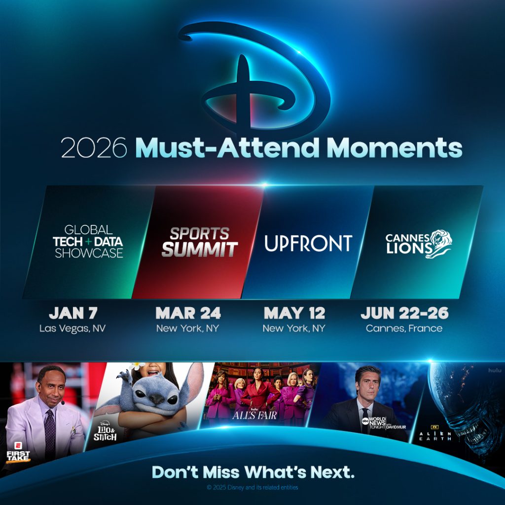 “Fans are showing up across every platform for the stories, characters, and experiences only Disney can deliver,” Rita Ferro, President, Global Advertising, said. “All this momentum propels us toward one of our most important annual milestones: the Disney Upfront. We’ve officially kicked off our roadmap, designed to showcase the full breadth of Disney’s capabilities — from content and franchises to data and technology.”