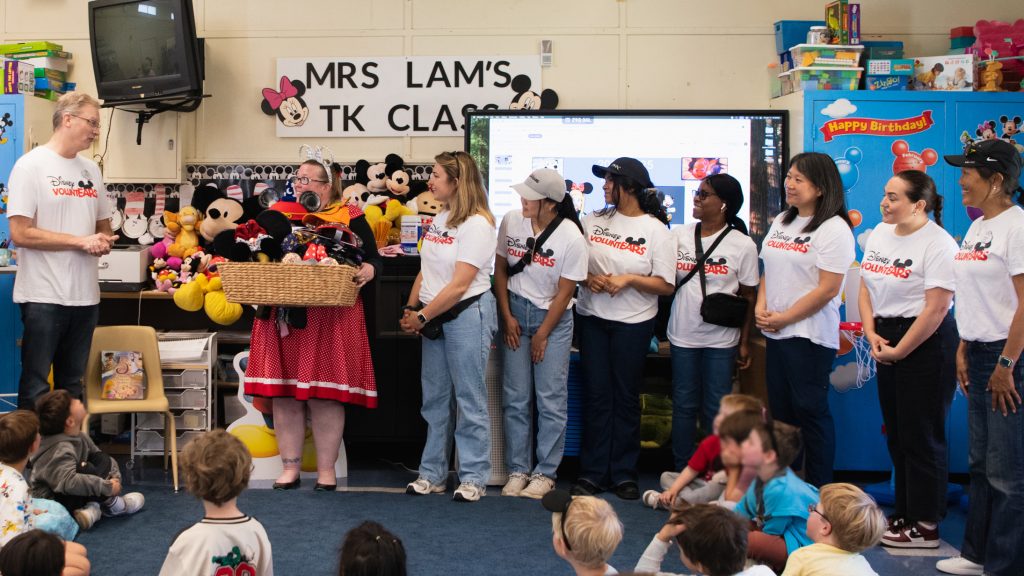 Last Friday afternoon, the students at Nora Sterry Elementary School in Brentwood, CA had an inkling that they were in for a delightful surprise. And judging by the Mickey Ears and characters shirts they were wearing, they suspected the surprise was coming from Disney. While Cast Members like John Breckow, Director of Corporate Citizenship, Disney Experiences, could tell the students knew was brewing at their school, “I’m not sure they knew how MUCH fun they were about to have,” Breckow said.