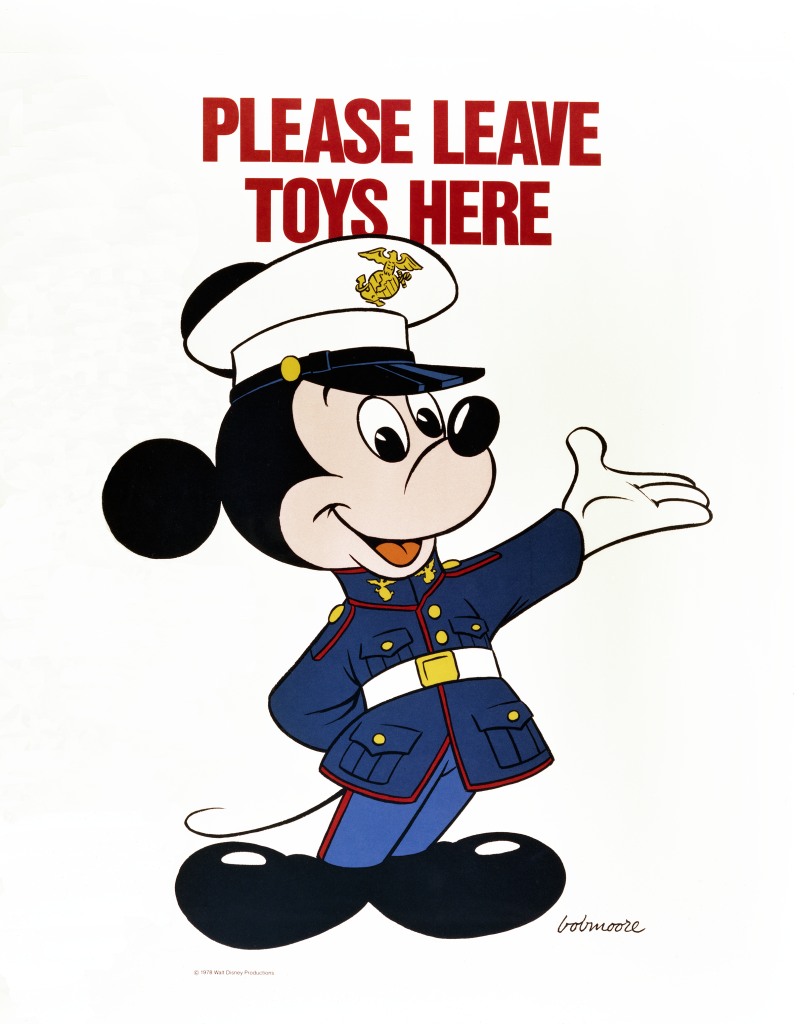 Disney artists also created national campaign posters for Toys for Tots, and over the years, these annual Christmas posters have featured beloved characters like Mickey Mouse, Donald Duck and others, helping to spread the message of giving across generations.